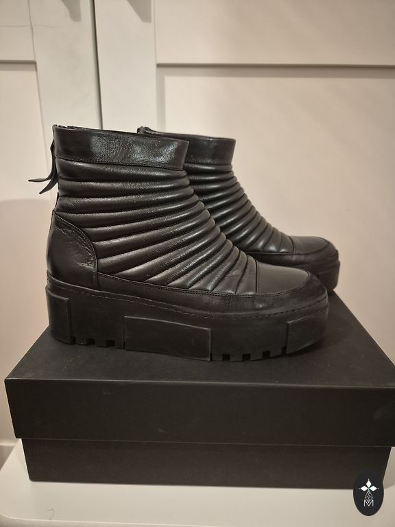 Ādas pussābaki ar gumijas pamatu - labi slapjdraņķim. Mērīti. Diezegan šaurai kājai. Baltā ādiņa mīksta, gumija gumijota. Pirkti uz atlaidēm. Norādītā cena jauniem zābakiem.