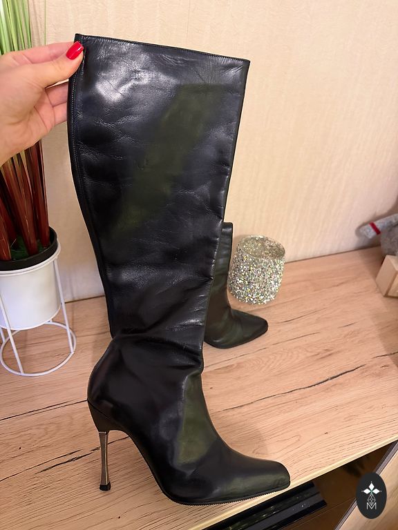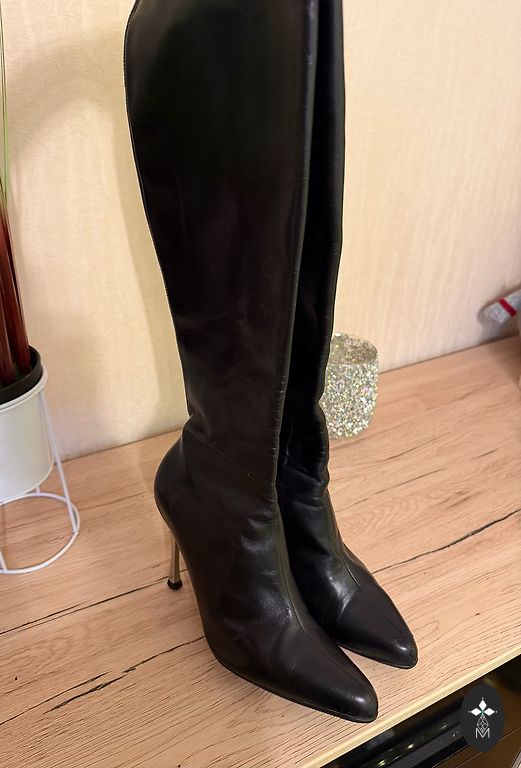 Gari papēžu zābaki, 37 izmērs, vilkti vienreiz iekštelpās, kā jauni! Papēdis 6 cm, augstums kopā ar papēdi 65cm, apkārtmērs augšpusē 43 cm, apkārtmērs ikrā 36-37 cm.