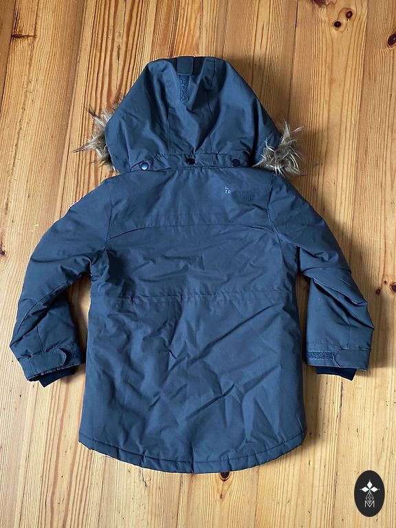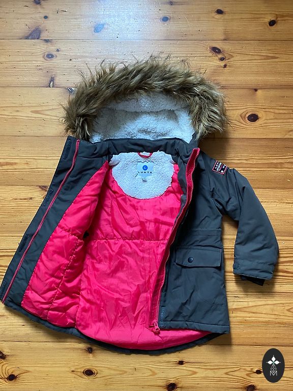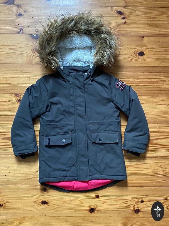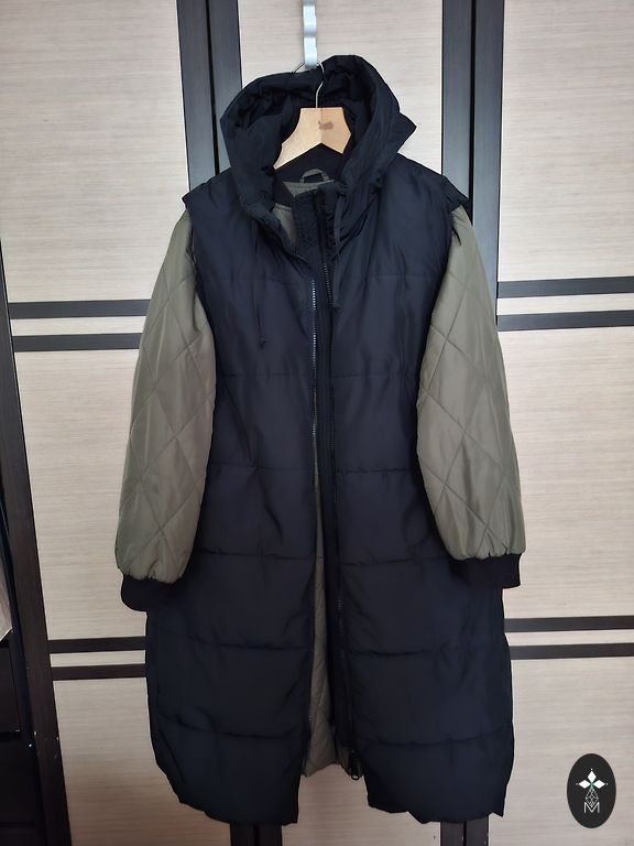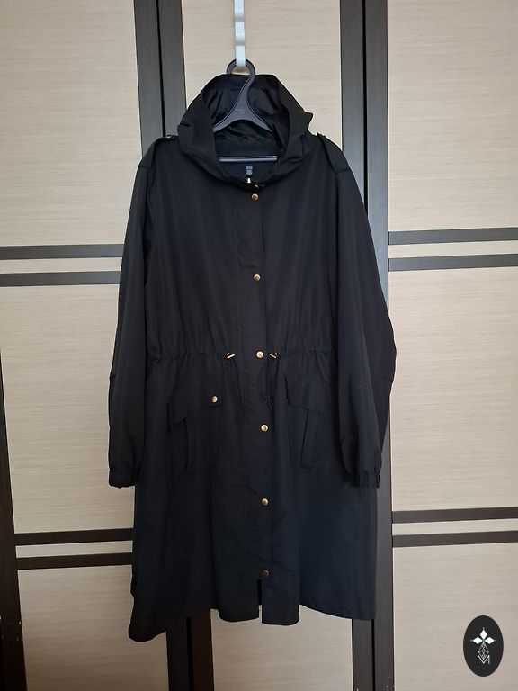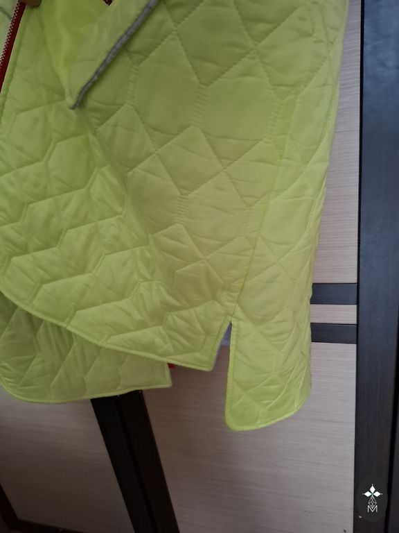 Skaista un silta jaka pārkas tipa ar dzīļu kapuci un kuplu puku. Defekti nav.