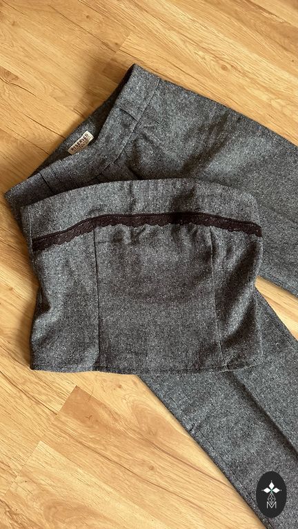 Angļu zīmola Ann Llewellyn esq. zīmola bikses ar koķetu atlociņu. Viduklis 42cm, gurni 52cm, garums 98cm.