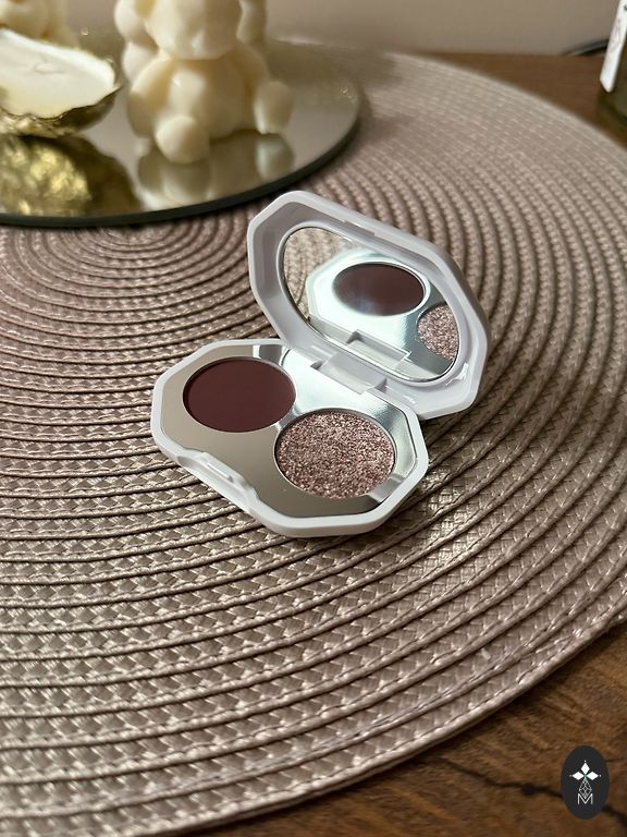 Blakstienų tušas apimtis su smėlio laikrodžio formos šepetėliu.
