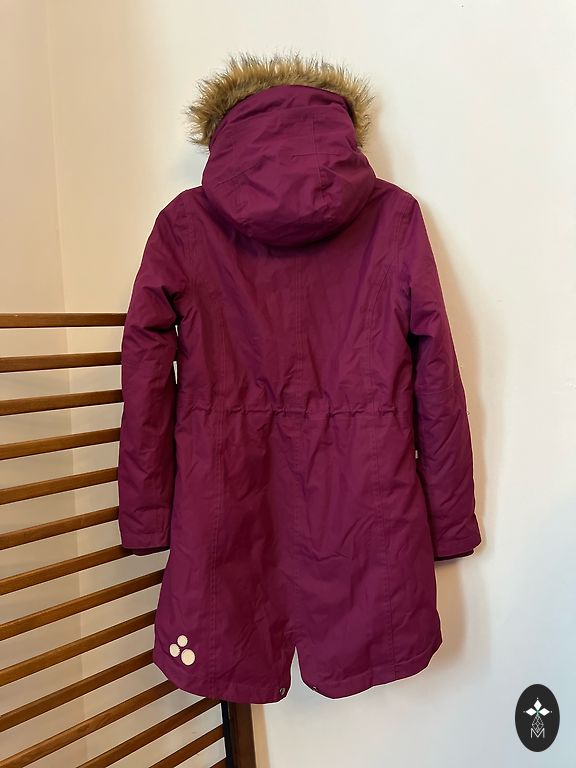 Kapuce noņemama,jakas apakšu var savilkt ciešāk.Kapuce labi turas uz galvas.Ir vieta"pirkstiņam".