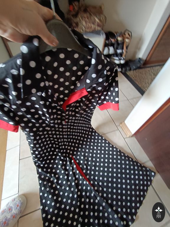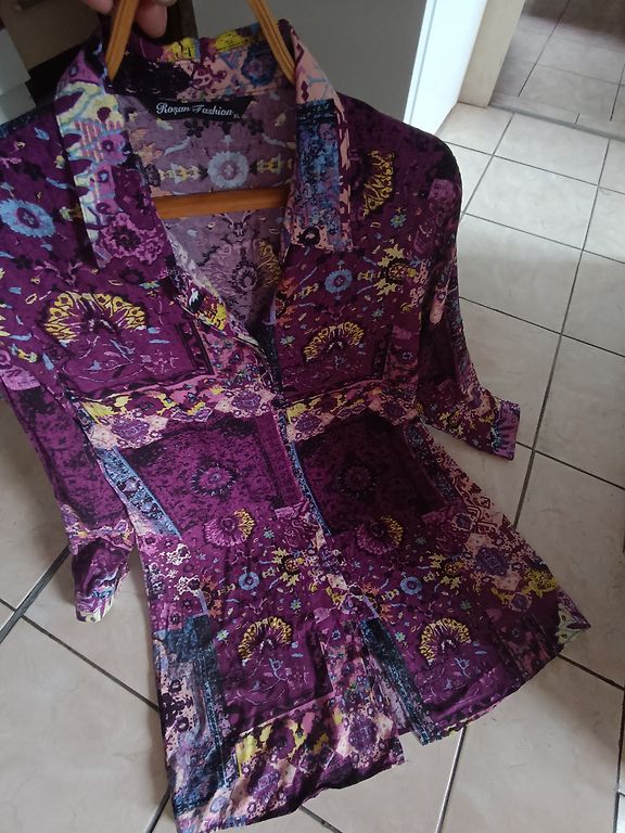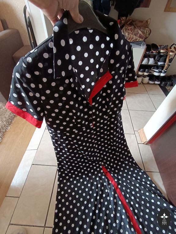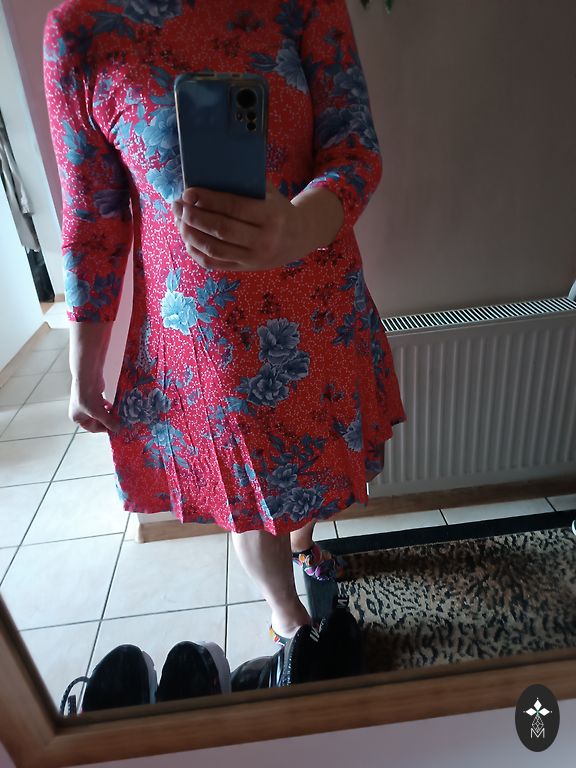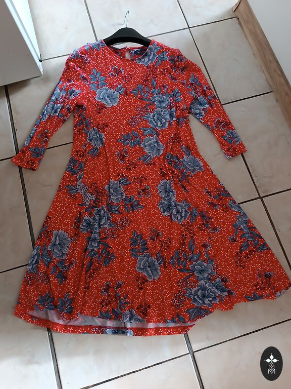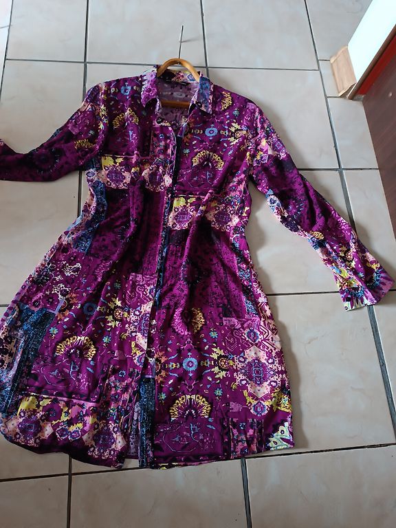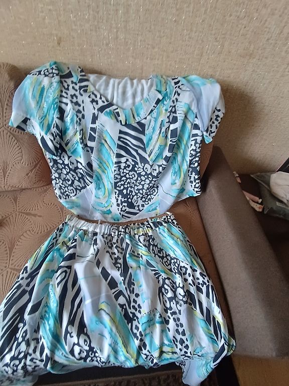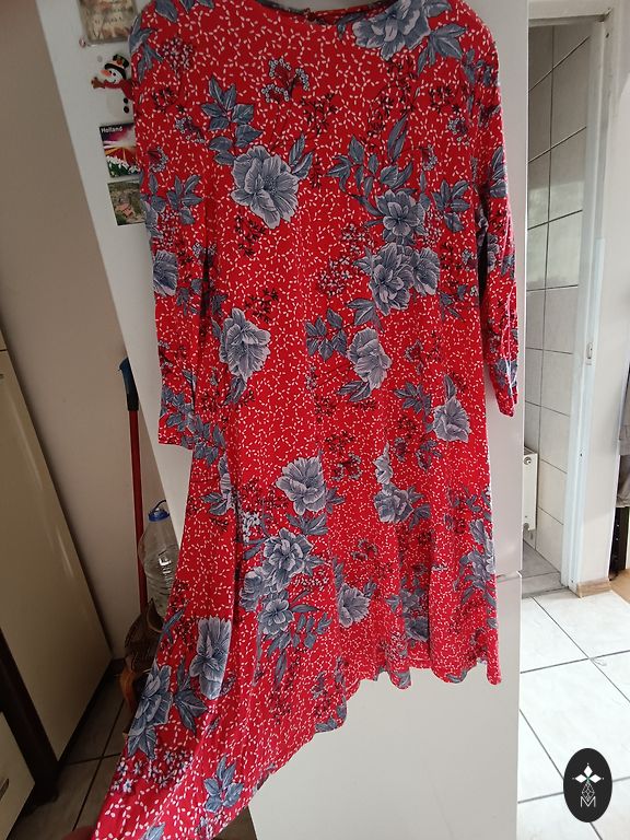 Supermiksta, elastiga, neburziga rudens kleitina. Ar 3/4 dalu piedurknem un dekorativu elementu kakla dala. Krutis 114, padodas, garums 102 cm.