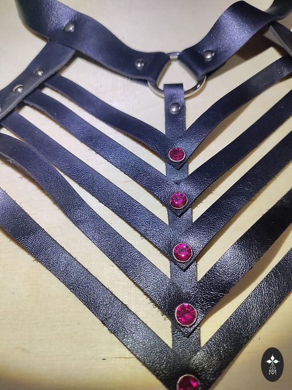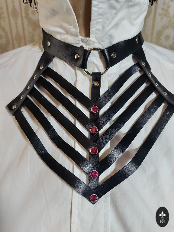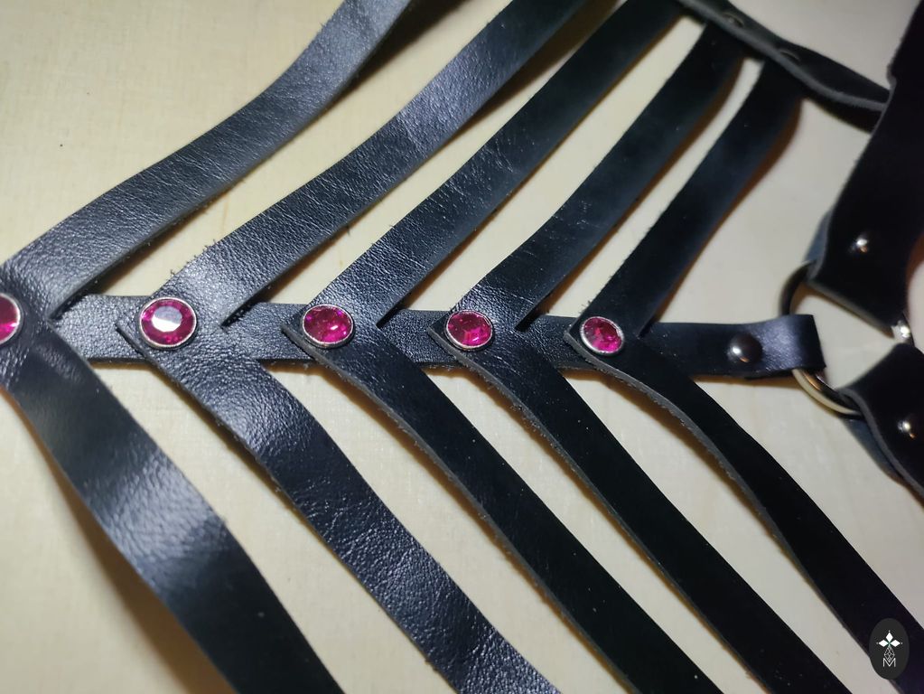 Apyrankė pritaikyta atskirai (taip pat odinė). Auskarai ir koljė pagaminti komplekte.
