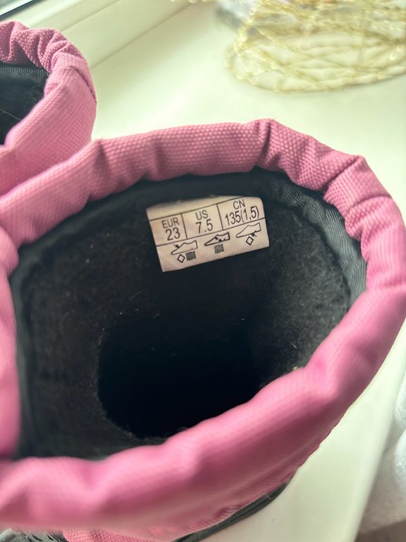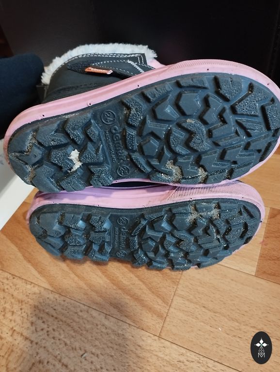 ECCO talvesaapad roosas värvis. 🌸 On näha igapäevase kasutamise jälgi – Ecco logo on kulunud, sisemine pool on veidi kriimustatud ja roosa värv ei ole enam ühtlane. Kinnitused on heas korras. Talla kaitse ei ole kulunud. Suurus: 24