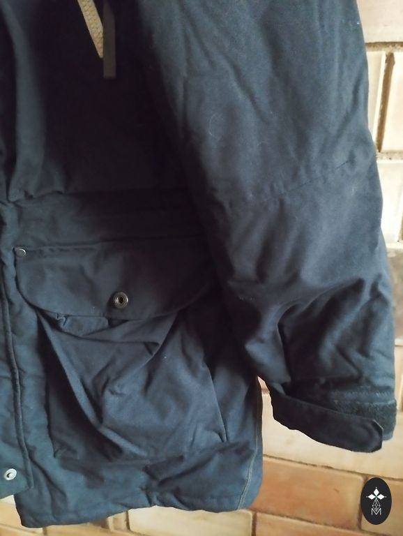 Pavasario/rudens parka su dirbtinio kailio pamušalu ir dideliu gobtuvu. Ilgis 80 cm, juosmens 51 cm, krūtinė 55 cm, rankų ilgis 65 cm. Dydis tarp M ir L. Galima skalbti skalbimo mašinoje ir džiovinti centrifugoje vidutiniais apsisukimais, labai greitai džiūsta. Uždarymas - užtrauktukas ir spaudės. Be defektų.