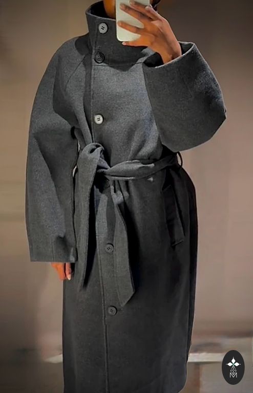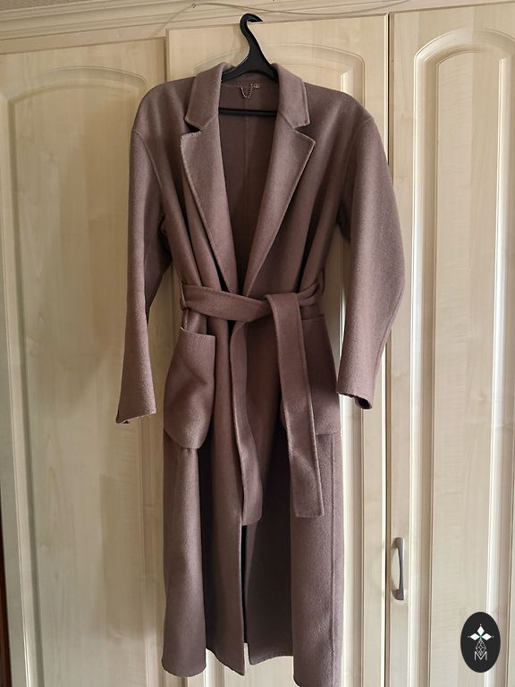 Mantel pika kaelusega. Range ja klassikaline, pikkus umbes 113 cm.