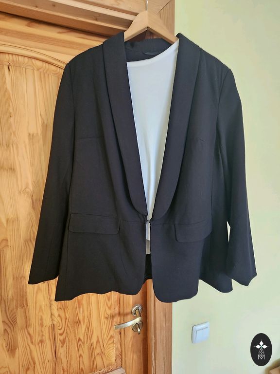 Parduodu klasikinį, juodą švarką su sagomis. Audinys nesiglamžo. Krūtinės apimtis 132 cm, klubams tiks iki 124 cm, rankovės ilgis 62 cm, švarko ilgis 76 cm. Siunčiu į paštomatą, nesusitinku asmeniškai, nuotraukų ant kūno nefotografuoju.