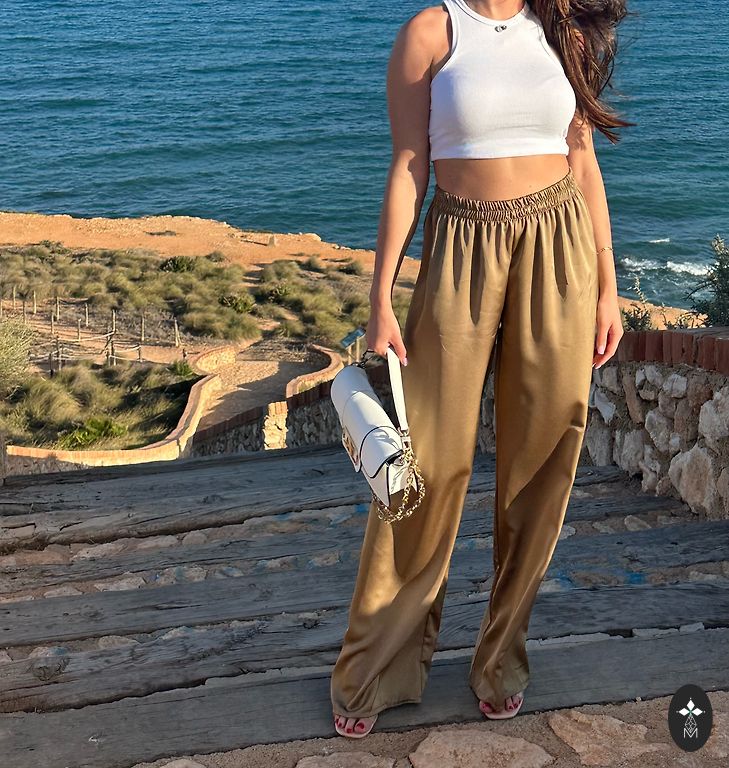 Несколько раз надетые, с широкими концами, удобные и стильные брюки.