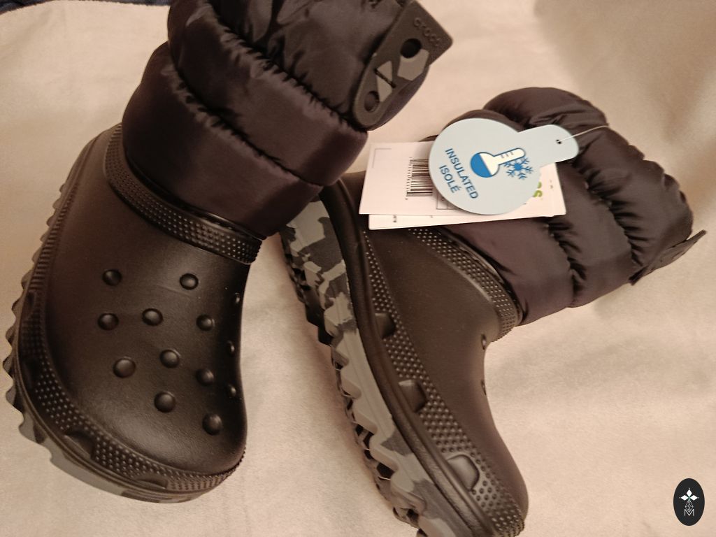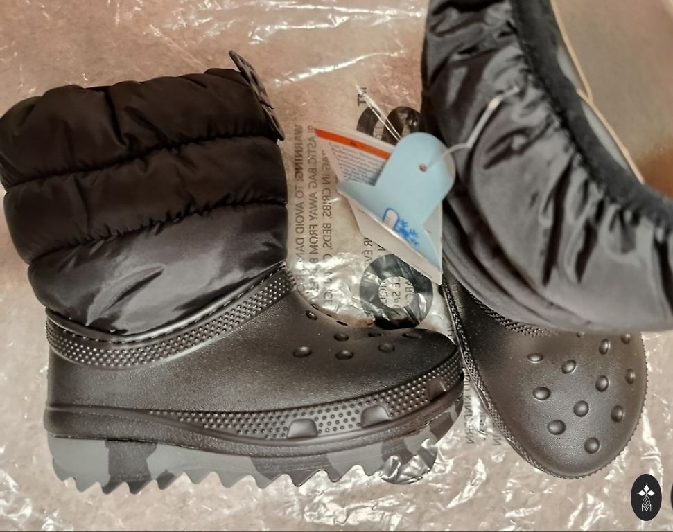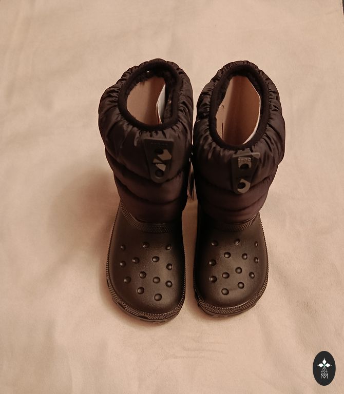 J4 pagal Crocs dydžių lentelę atitinka 23 cm arba 36/37 dydį. Klumpės su uždara kulna, minkšta ir puria pamušalu. Guminė padas su spygliais geresniam sukibimui.