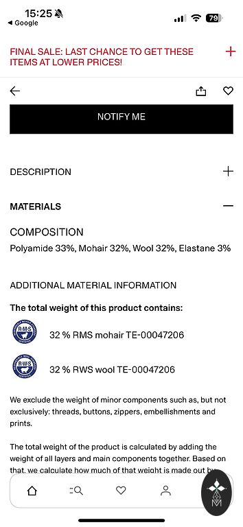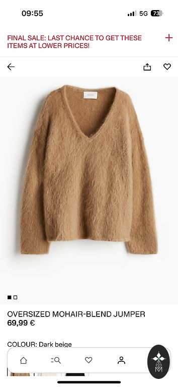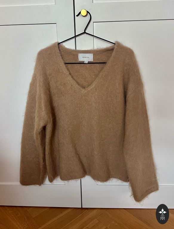 100% wool sweater from the Scandinavian brand SAND (although I have cut off the composition tag). Bought in Denmark. Worn very little. Length from the neck in the middle to the bottom 63cm, width under the armpits 50cm, sleeve length 58cm.