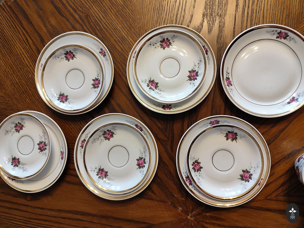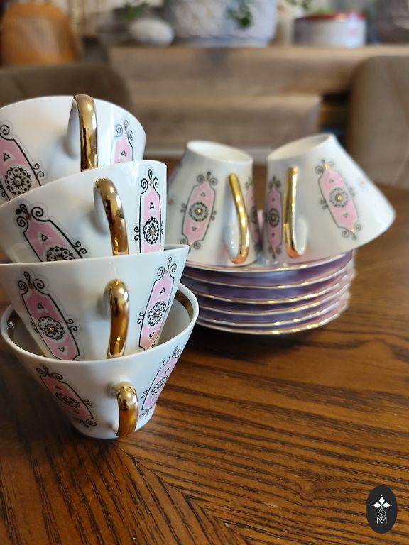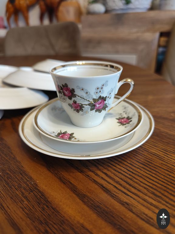 Rpr kafijas servīze Viktorija ar pīlādžu. Krūzītēm un apakštasītēm r pāris robiņi.