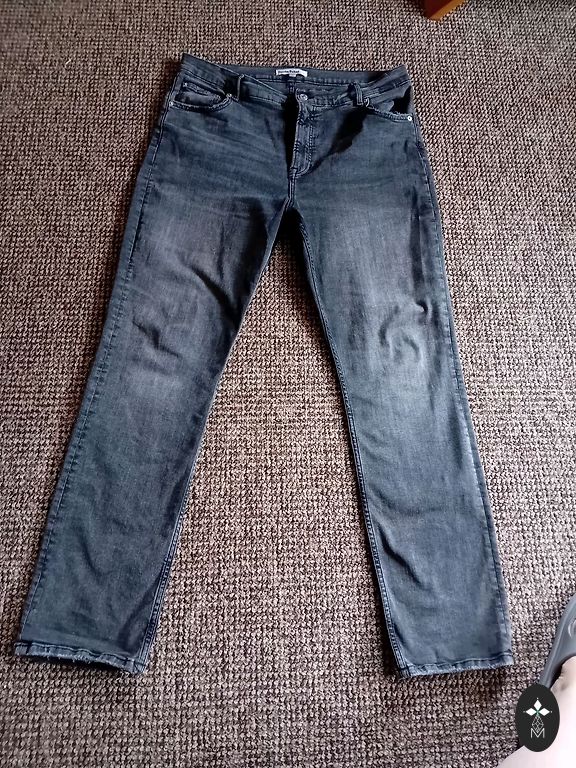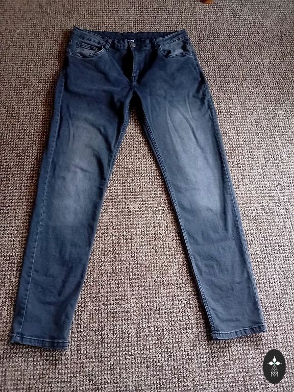 Nauji džinsai su plyšiais, tiesus modelis. Suklydau su dydžiu. Parašyta 42 dydis.
