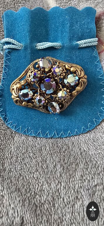 Broša ar retu pulētu akmeni - čaroītu. 🔲 Akmens izmērs = 45x22 mm / brošas kopējais izmērs ar ietvaru apm. 50x30 mm. 🔲 Skaists ietvars ar atturīgas mežģīnes motīvu, taču domāju, ka nav sudrabs. Melhiors vai tml. sakausējums, labi pakļaujas spodrināšanai. 🔲 Vertikālā pozīcijā var pārveidot par kulonu. 🔲 Tiem, kas pievērš uzmanību akmens nozīmēm, čaroīts dod mieru, uzlabo omu, stiprina laulības saites, iedarbojas uz kakla čakru. Plašāka informācija: https://www.kristalupasaule.lv/akmenu-ipasibas/caroits/ 🔲 Sūtu ar pakomātu.