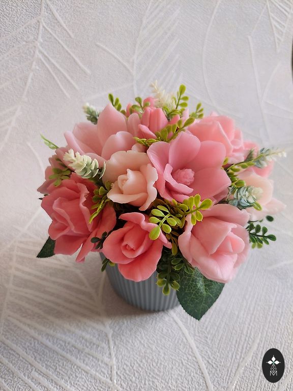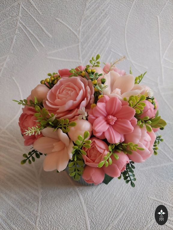 Sortimentā ziedi, sirdis , zaķīši, čūskiņas , kā arī 8.marta ziepītes. Tiek nodotas iesaiņotas caurspīdīgā dāvanu maisiņā apsietas ar dāvanu lentīti.