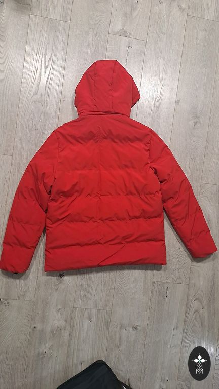 рантом. Регулируемый съемный капюшон со съемным мехом. Состав: 63% хлопок, 37% полиэстер. Наполнение 60% утиный пух, 40% утиные перья. Подкладка полиэстер, мех искусственный. Длина рукава: 68 см, длина куртки: 70 см, обхват груди: 140 см, плечи 54 см. Доставку оплачивает покупатель.