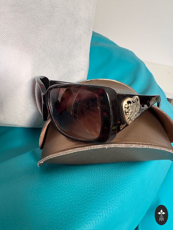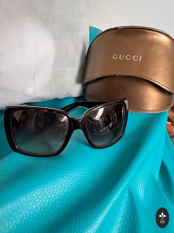 Солнцезащитные очки MARC JACOBS SUNGLASSES MARC 101/S DDB-9C GOLD COPPER/GRAY AUTHENTIC в хорошем состоянии. На каждой дужке есть код бренда. В комплекте идет чехол и салфетка для чистки. Линзы третьей категории обеспечивают защиту от UVA/UVB. Возможно, потребуется отнести в оптику, чтобы прикрутить и отрегулировать размер дужки.