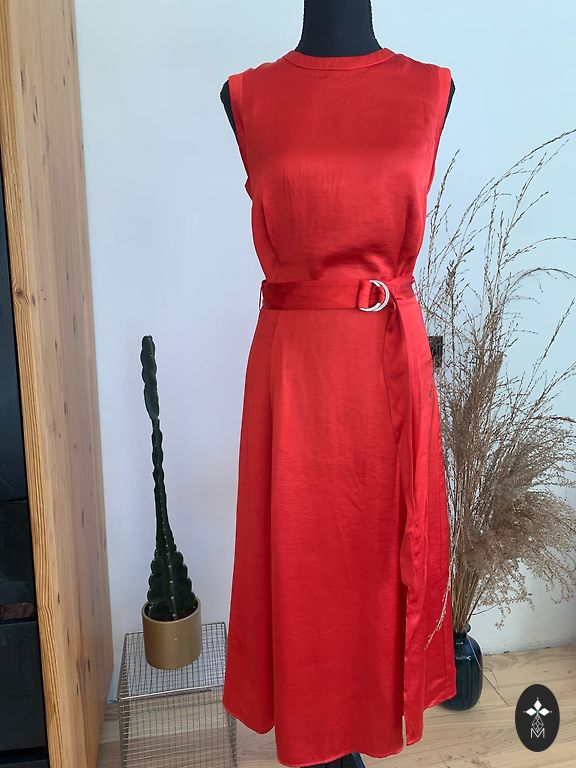 Vilkta uz vienu pasākumu, stāv bez pielietojuma, aizmugurē rāvejslēdzējs, der uz stabilu L izmēru, viduklis 43, paduses 52/53 cm, pleci 40/41, garums 128/129, audums nav plāns, cauri nespīd.