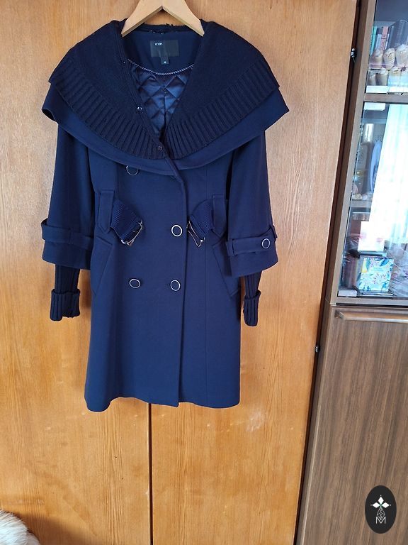 Maxi length interseason oversized coat/vest (marked as S, but I would say more towards oversized M), with side slits on studs and removable sleeves - in vest format. Very interesting color tone. Barely used, as it is slightly too long for me. Length 120cm, shoulders 52cm, chest 56cm.