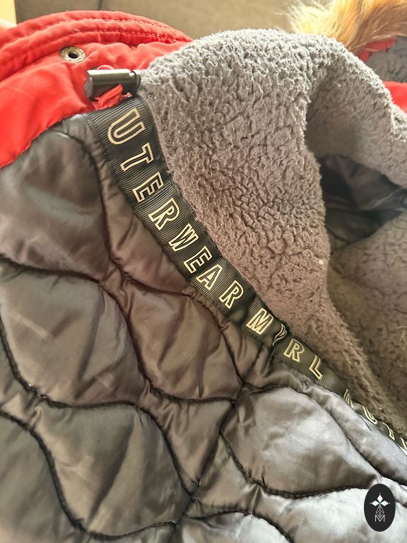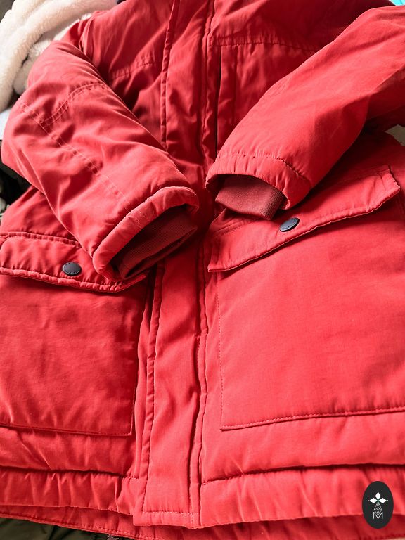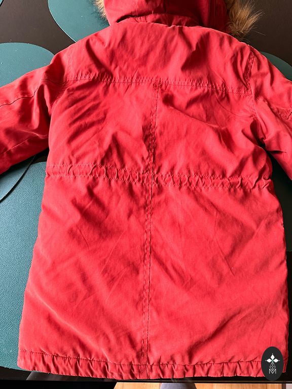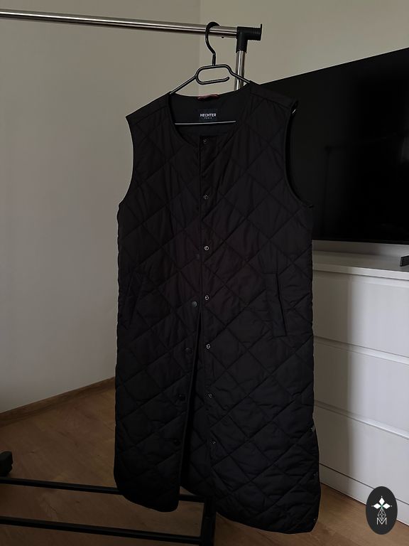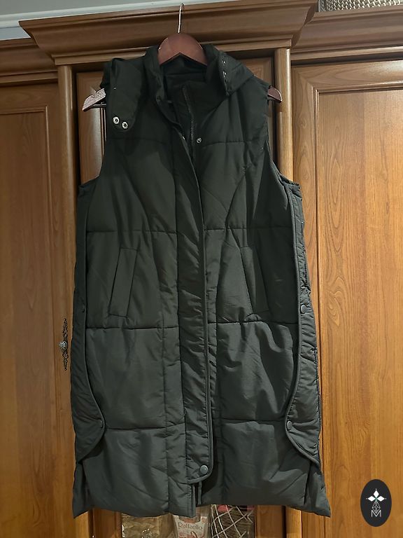 Praktiska un silta. Aukstā laika var vilkt zem mēteļa. Virsējā kārta vēja aizturoša, ir kabatas. Plecos 47cm, garums 90cm