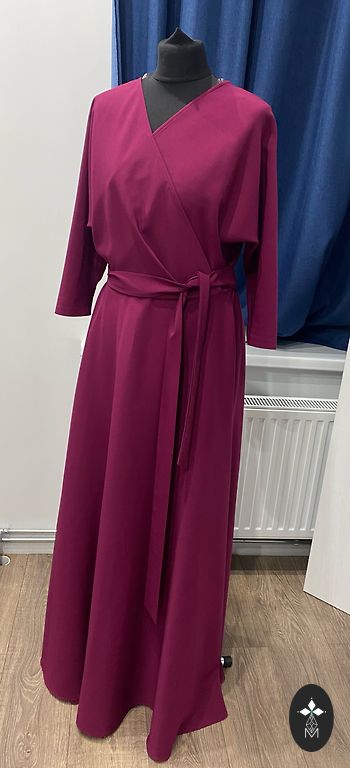 Vilkts uz garumu 168 cm, kleita praktiski līdz zemei. Kleitai dažādi materiāli - augša pieguļ augumu, ir mazliet staipīgs. Kleitas apakša diži neburzās, bet, protams, līdz zināmam brīdim. Pati esmu starp S un M izmēru - tāds ir arī kleitai.