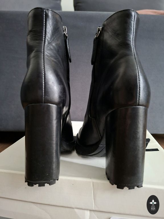 Ādas apavi precīzi atbilst 38., vidējai pēdai. Stabili, papēdis, mērot aizmugurē, - 6,8 cm. Uz papēža kādu švīku var atrast, ja meklē...Kopumā glīti apavi pasākumam! Pirkti šeit, tomēr neder, pārdodu par to pašu cenu.
