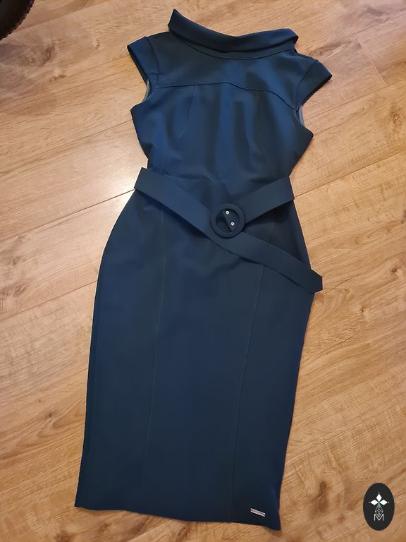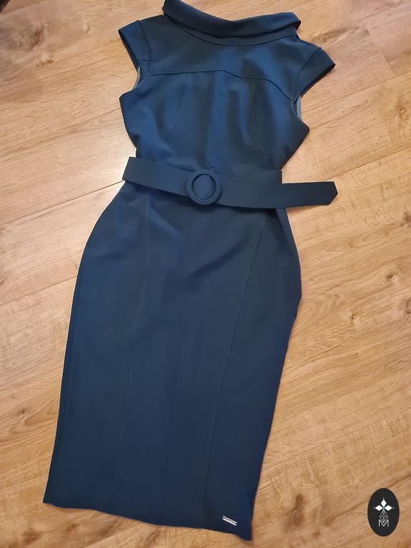 Платье тёмный синий цвет, ткань полиэстер средней плотности не просвечивает и не мнётся. Объем груди 92 см. Объем бёдер 92 см. Длина рукова 27 см. Длина платья 95 см. Производство Турция.