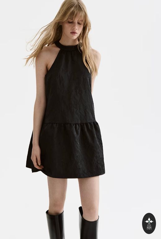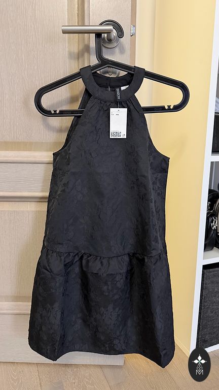 Suknelės ilgis 91 cm, krūtinė 53 cm, klubai 56 cm, yra kišenės.