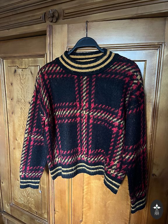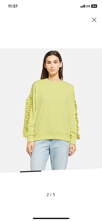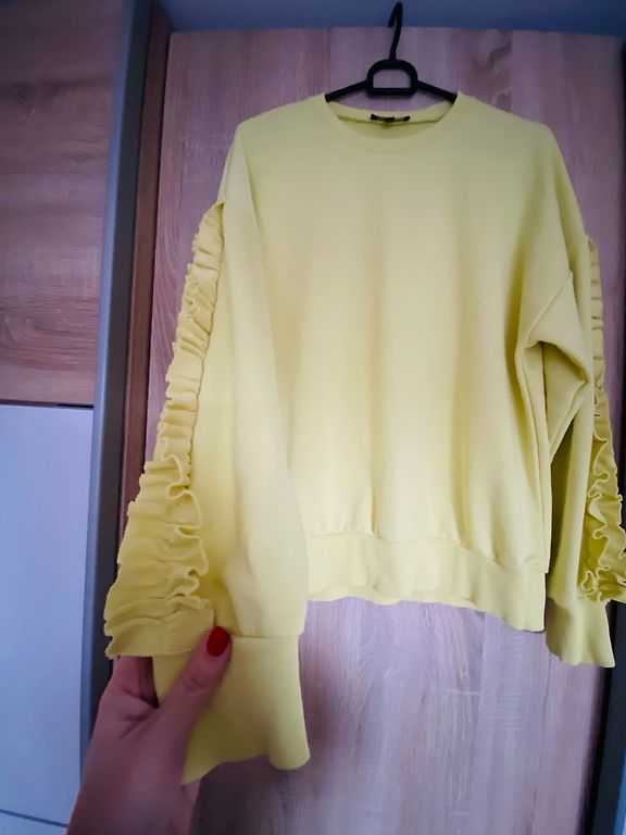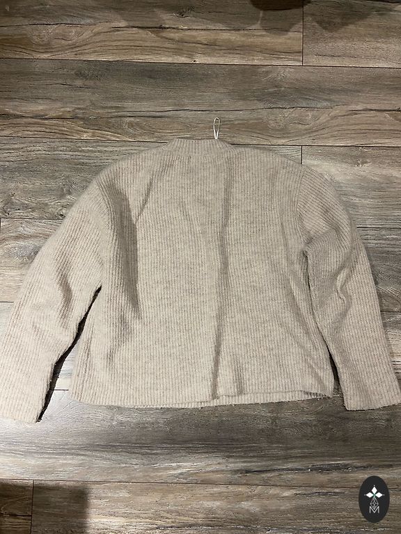 Balts pūkains džemperi. Priekšā ap kakla nedaudz palik dzeltenigaks, varbūt var nomazgāt. Dzīve īsti nav pamanāms. M izmērs bet derētu arī S būs brīvāk