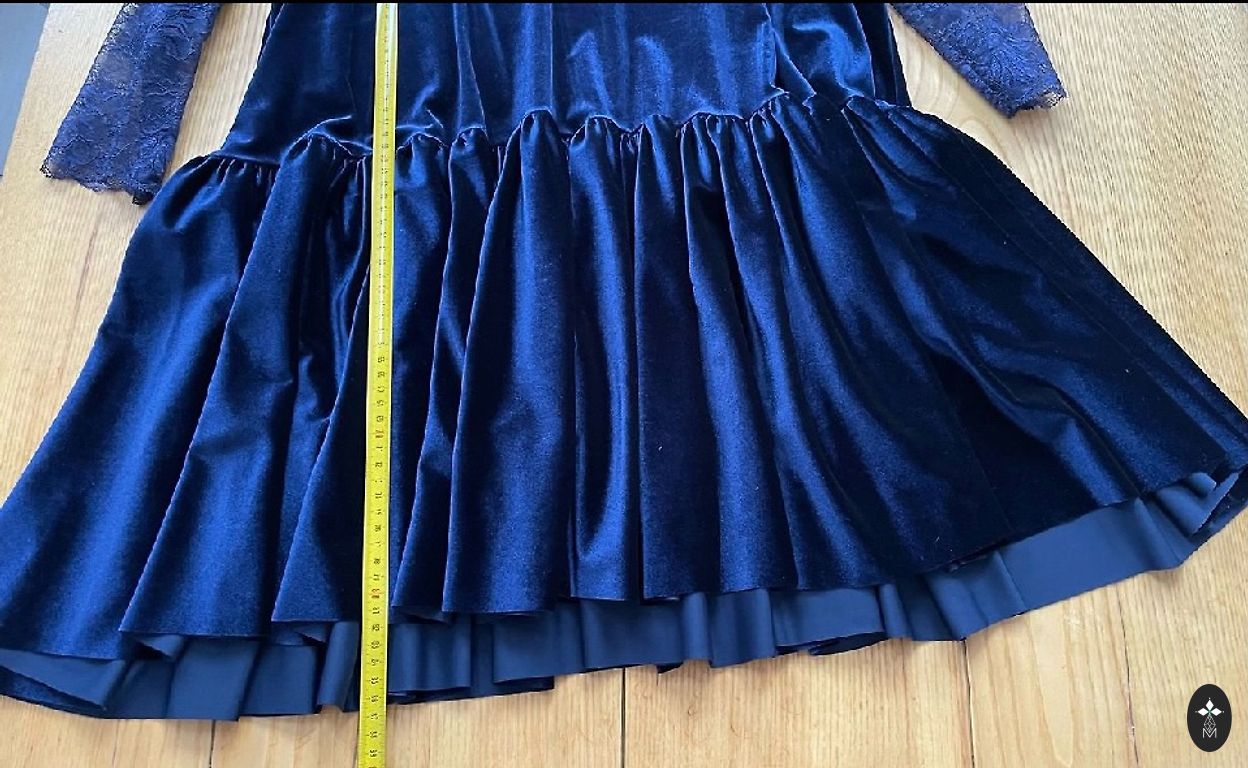 Kleitas kopgarums no pleca 152 cm, līdz ar to, pietiekami gara, lai vēl īsinātu pēc savām velmēm.