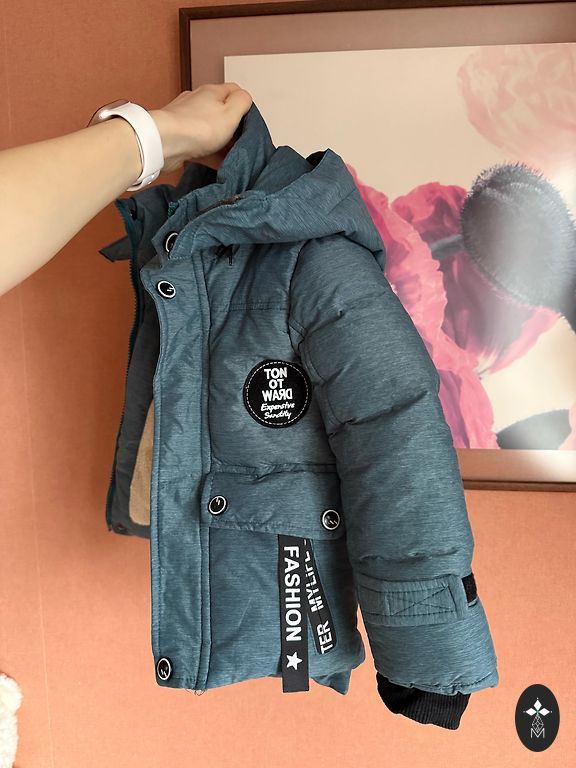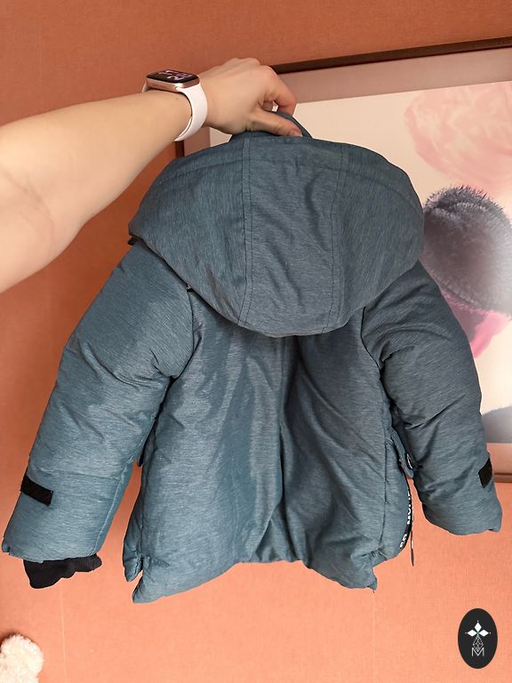 Beautiful, bright, and very warm jacket with a hood, in perfect condition. Elastic cuffs.