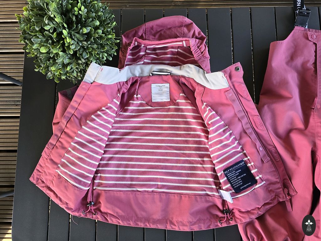 Ļoti maz vilkts kostīms, ātri izauga. Superīgs vējā, mitrumā. Vasarā, rudenī, pavasarī. Muguriņa pagarināta, forši atstarotāji, kabatas. Kapuce ar “ širmīti”, var savilkt, ka deguns tik paliek ārā.