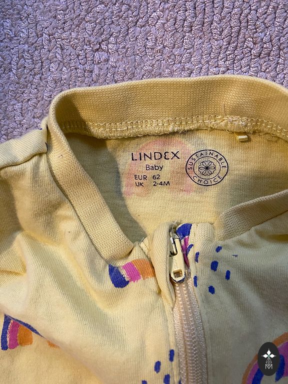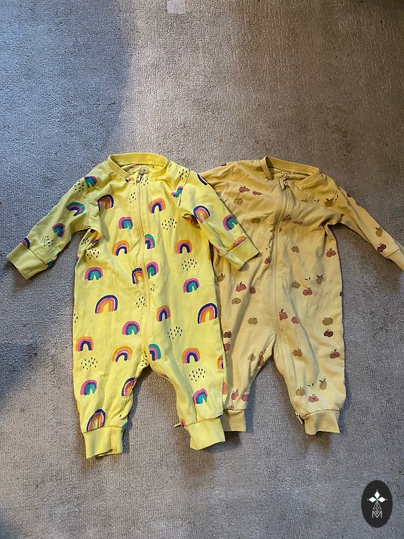 Very nice 100% set. Pajamas and pants. Both size 62. For a 2-4 month old baby.