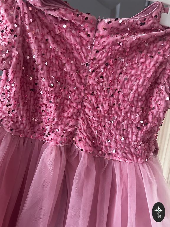 Uzvilkta 3 reizes . Šuta pec pasutijuma . Izmers apmeram 122. Kleitas garums no pleca 70cm