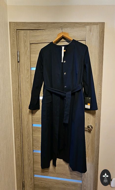 Nešiotas vieną kartą, būklė kaip naujas. Dydis: S. 100 % medvilnė. Spalva: tamsiai mėlyna, rudos odinės sagtys ant rankovių ir juosmens. Labai gražus pamušalas charakteringomis Ralph Lauren spalvomis.