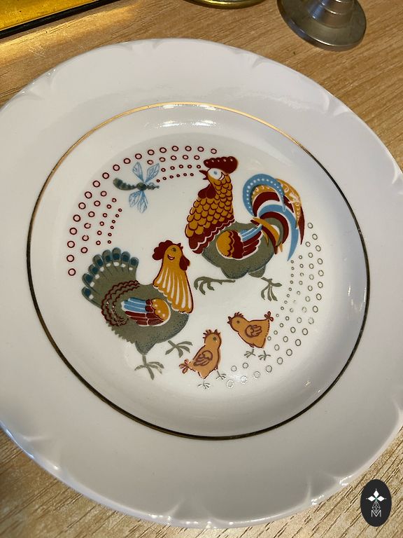Naudoti Victoria čekų porceliano indai be įtrūkimų ir be nuskaldymų. Nusitrynęs aukso apvadas, atskiriems lėkštėms galimas vietinis dekoro nusitrynimas, naudojimo pėdsakai. Indai seni, bent 100 metų! 8 lėkštės 19,5 cm; 1 padažo indas 400 ml su integruota lėkštute; 2 pailgos lėkštės 18 x 28 cm; 1 pailga lėkštė 21 x 30,5 cm; 1 pailga lėkštė 25 x 37 cm. Iš viso 13 vienetų. Komplektas kainuoja 35€.
