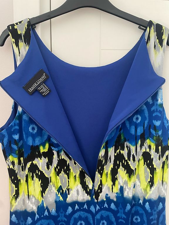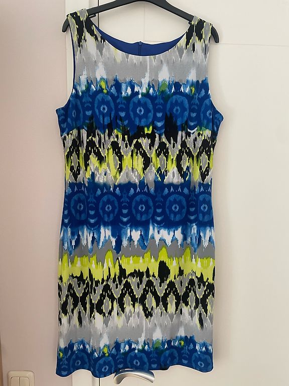 Skaista, koša, taisna piegriezuma kleita ar oderi, pašūta no sīki plisēta auduma. Piedurknes bez plisējuma. Kleitas garums 100 cm, piedurkņu garums 56 cm.