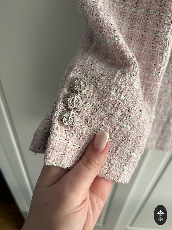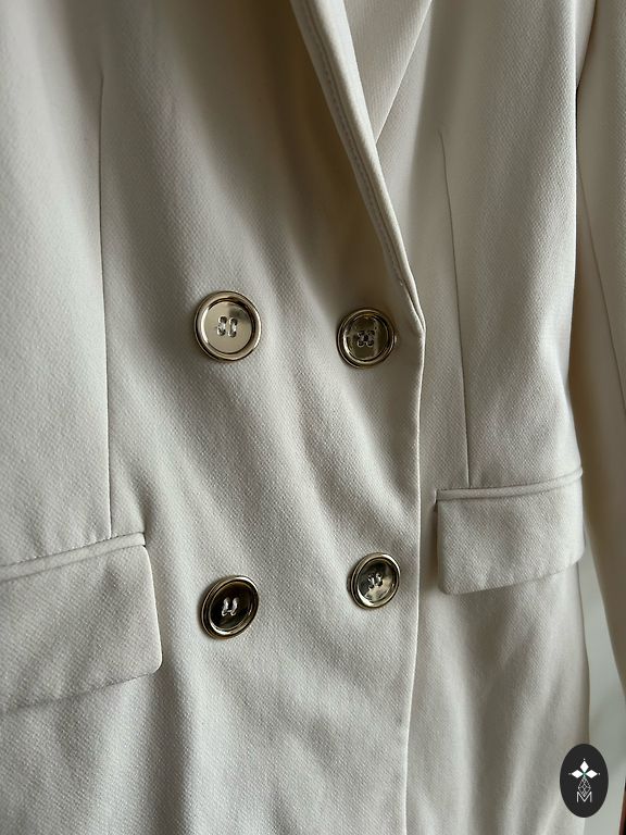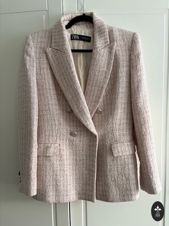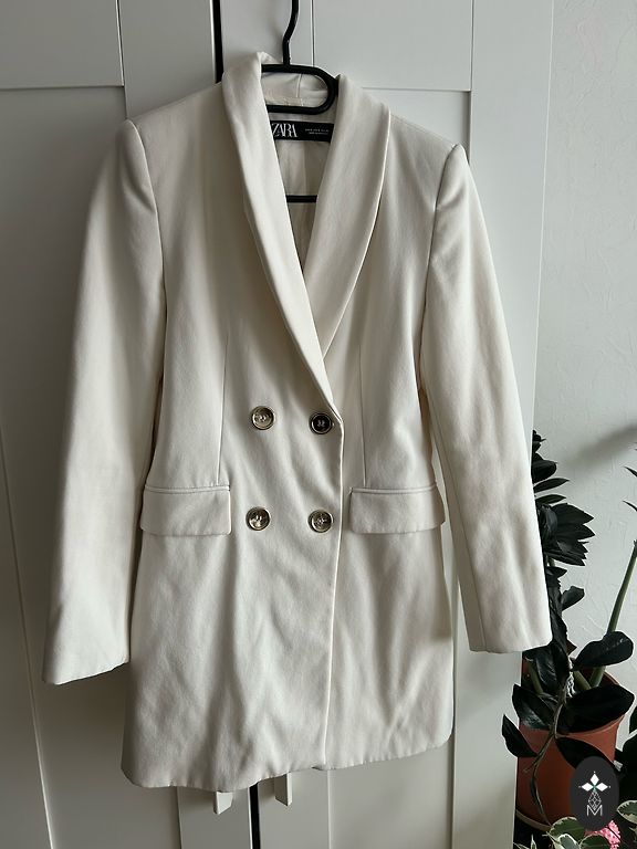 Zara Length 51, chest 47/48 Accentuated shoulders Very beautiful blue color Pants also on sale Size S