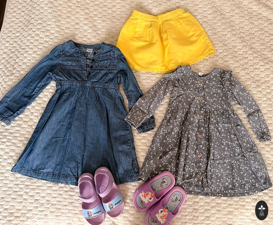 Ilus kevad/suvine komplekt suurepärases seisukorras tüdrukule (kantud kaks korda siseruumides, üks neist ainult lihavõtte fotosessiooniks). Sobib umbes 80 cm. Seelik - United Colors of Benetton Särk - Billieblush Retuusid - Sinsay
