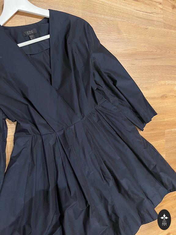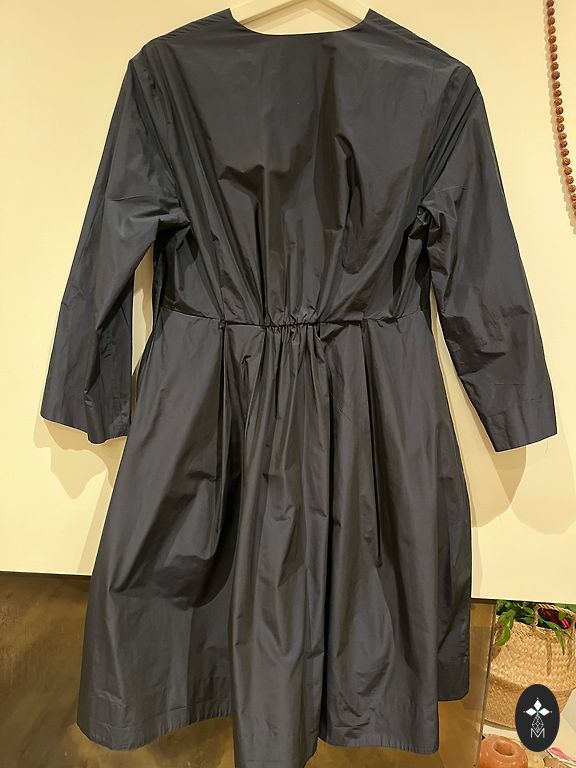 Skaista kleita tumši zilā krāsā, sānā aiztaisās ar rāvējslēdzi, ir kabatas!