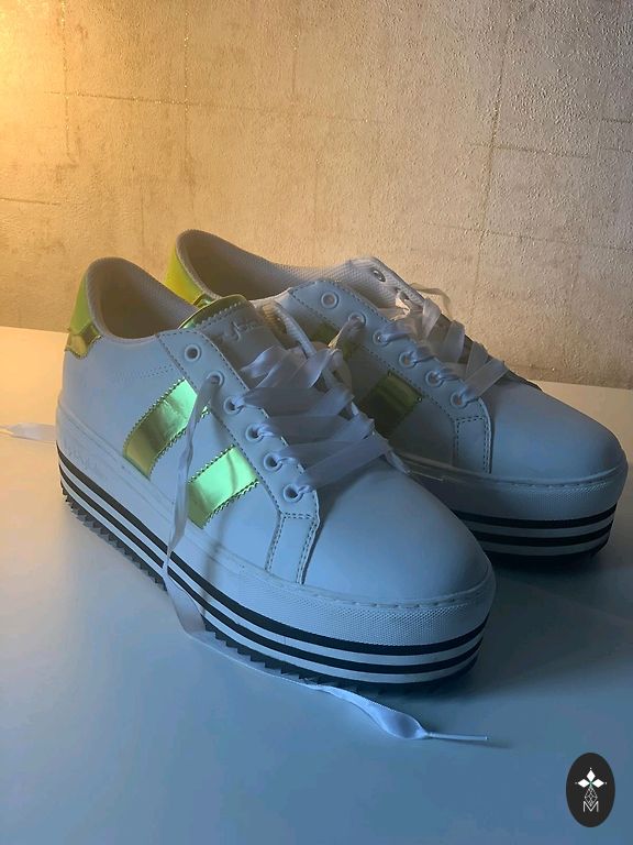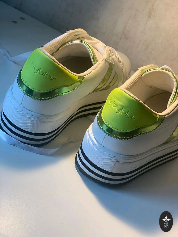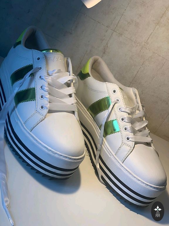 Aukšti batai. Stora padas, 25,5 cm vidpadis nurodytas. Vieno bato pamušalas nusidėvėjęs ties kulnu.