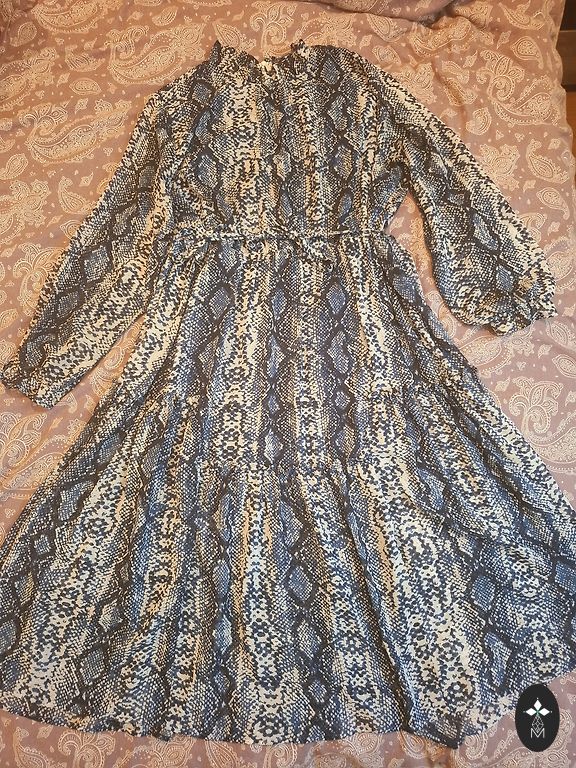 Kleita 2x vilkta, jaunas preces stāvoklis. Diemžēl svārku daļā sānā apaļš 20centu lieluma pleķis un svītriņa. Neizdevās iztīrīt.Kleita pirkta par 65€,dēļ defekta atdošu lēti.