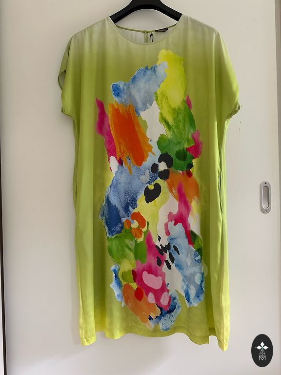 Nauja suknelė su visomis etiketėmis. Apvyniojamo stiliaus – užsegama raišteliais. Plotis ties juosmeniu – 37 cm; ilgis – 120 cm.