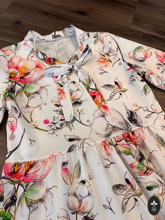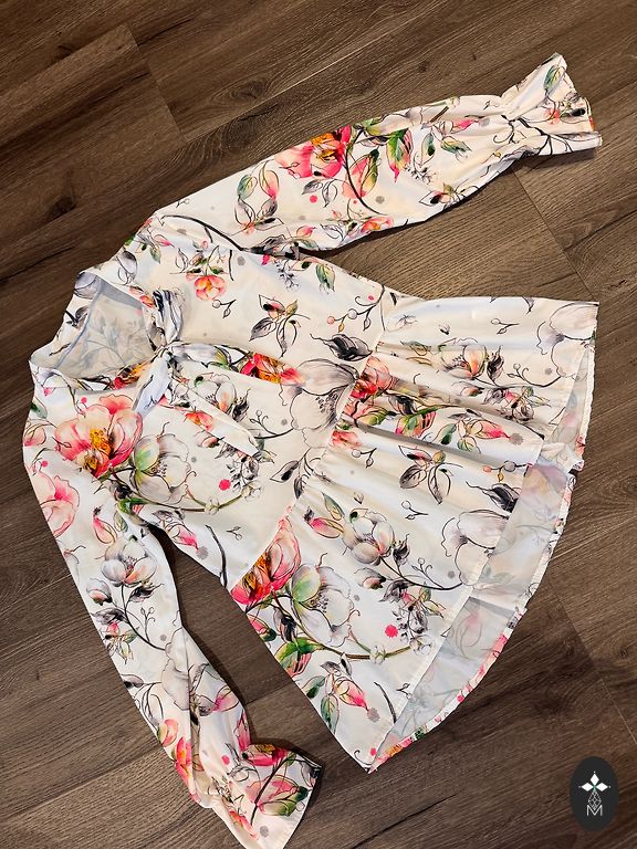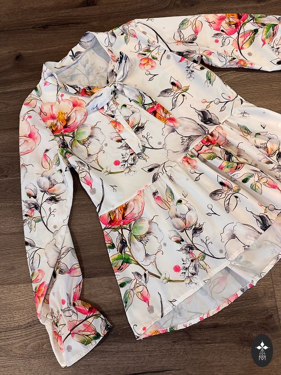 A wonderful blouse, buttoned at the back. Looks great with both skirts and pants. Feminine, elegant.