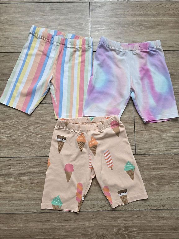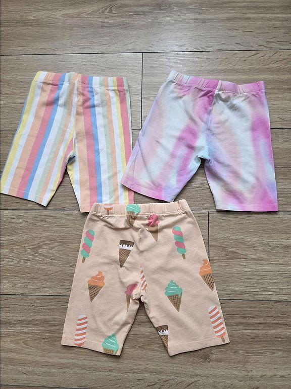 Izmēri dažādi, bet visi vilkti +/- vienā laikā 110/116.izm, jo faktiski lielākie izmēri, kas norādīti uz birkas neatbilst un ir mazāki, tāpat ir ar maziem izmēriem- tie ir tik elastīgi, ka der ilgā.
