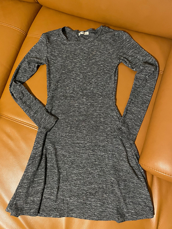 Pagal užsakymą pagaminta mėlynai pilka suknelė