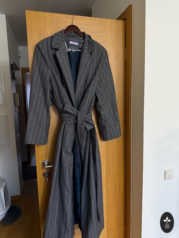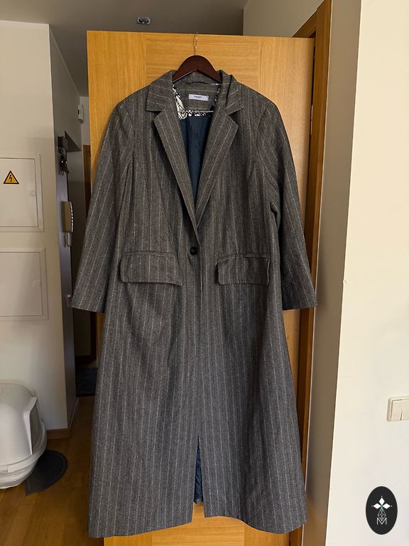 Švelniai dėvėtas Massimo Dutti vilnonis paltas pavasariui / rudeniui. Tartan raštas. Be pamušalo. Tiesaus kirpimo. Užsegimas viena spaude. Ilgis 114cm. Rankovės ilgis nuo peties siūlės 50cm, bet siūlė eina po peties linija.
