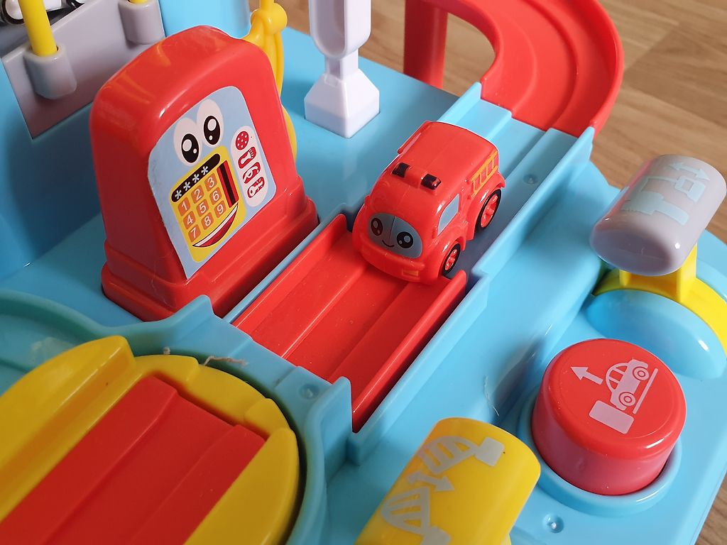 Dzied, kustās un atskaņo dziesmas, kuras dzied mikrofonā, ir gaismas efekts. Darbojās uz baterejām.