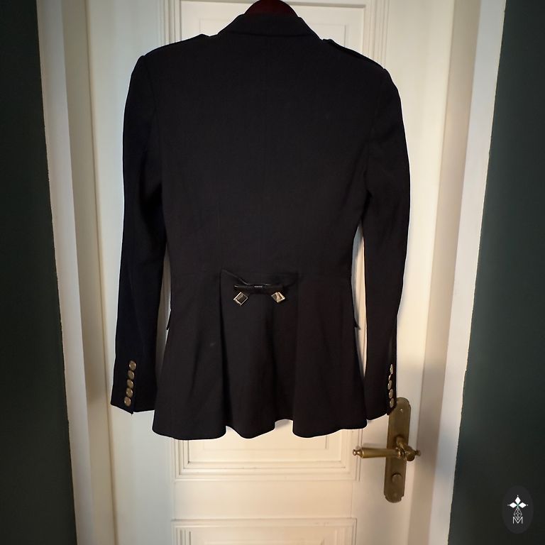 Švarkas S arba M dydžio. Geros būklės. Tamsiai mėlyna spalva, beveik juoda. Nuotraukoje, deja, atrodo šviesesnė.