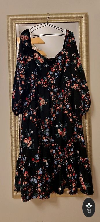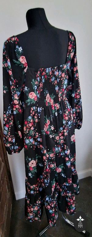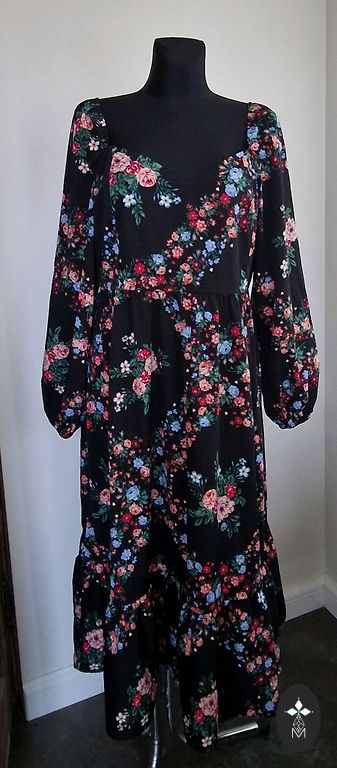 Vilkta pāris reizes, jo palika par mazu, ļoti patīkams audums, viegli gludinās Garums 130, starp padusēm 60, viduklī gumija, plecu platums 80, viduklī iestiepjot apkārtmērs 98 cm